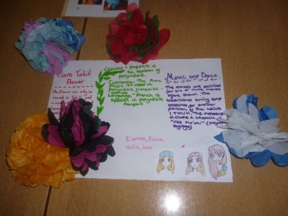 Another French-speaking area students found out about was French Polynesia, and students learned about the sports, dances, natural resources and tattoo customs amongst other facts. They also created “heis” which are customary flower garlands used during celebrations.