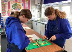 In Year 7 we made pizza toast using a wide range of colourful and nutritious vegetables, thinking about and discussing how the snack fitted well with the requirements of the Eatwell guide we had looked at within lessons. Students identified a source of calcium from the cheese, fibre and vitamins from the vegetables and carbohydrate from the bread base. Some excellent and tasty results were achieved! This also was a great introduction to the food room and developed students’ knife skills as well as food preparation skills such as slicing, dicing and de-seeding.